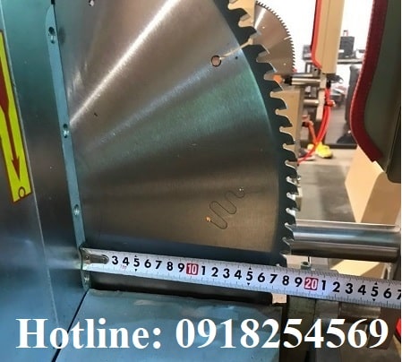 Đường kính lưỡi cắt nhôm 500mm ( với kích thước đường kính như vậy máy cắt có thể cắt được tất cả các loại nhôm kể cả bản nhôm thủy lực dày 18-26cm). Lưỡi cắt nhôm 500mm được gắn vào buli (đảm bảo tốc độ vòng quay khi cắt nhôm)
